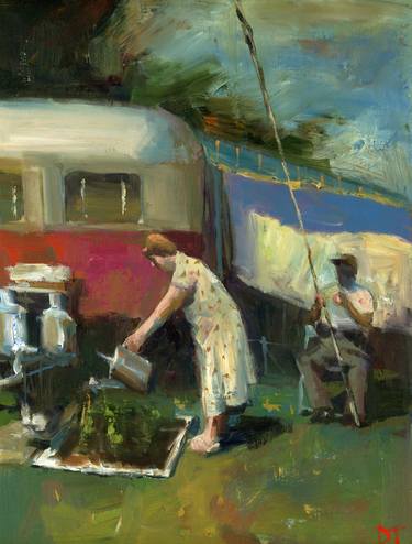 In my art, I've been integrating vertical cuts into compositions, using geometry subtly and expressively. This approach aims to provide structure and rhythm to the images, enhancing the visual experience with a dynamic dimension in the works. Themes I typically explore are varied. I reinterpret still lifes with varied color palettes and innovative compositions. I also venture into representations of the human figure, exploring the complexities of their emotions and identities. Furthermore, I pay homage to revered masters of painting, offering a contemporary perspective to their iconic works.